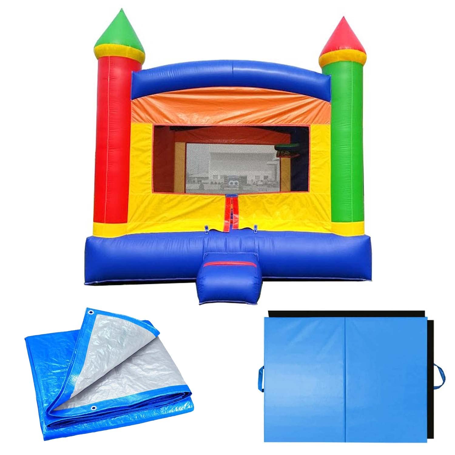Amazon Com Crossover Rainbow Inflatable Bounce House 13 Foot X 12 Foot Bouncy Area Rental Grade Construction Pvc Vinyl Includes Blower 4x4 Folding Gym Mat Ground Tarp Anchor Stakes